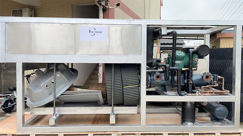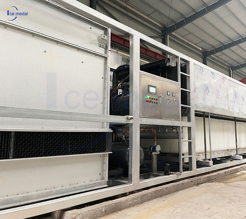 客户是开设自己的冰工厂, 直冷块冰机对他来说是一个不错的选择。该机器是高度自动化的,不需要手动操作来进行水补给,制冰和脱冰。直冷块冰机只需占据一个小区域,易于安装,并且可以通过在现场连接水和电来制冰,这对新手很友好。