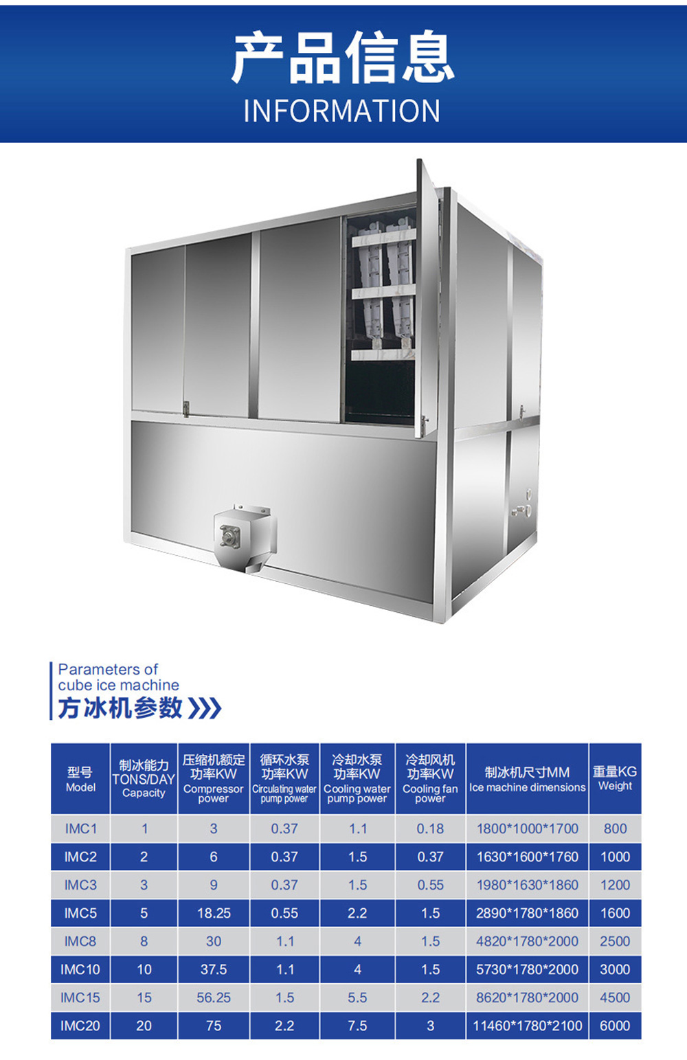 6、冰块耗电量为80kw/1吨;
