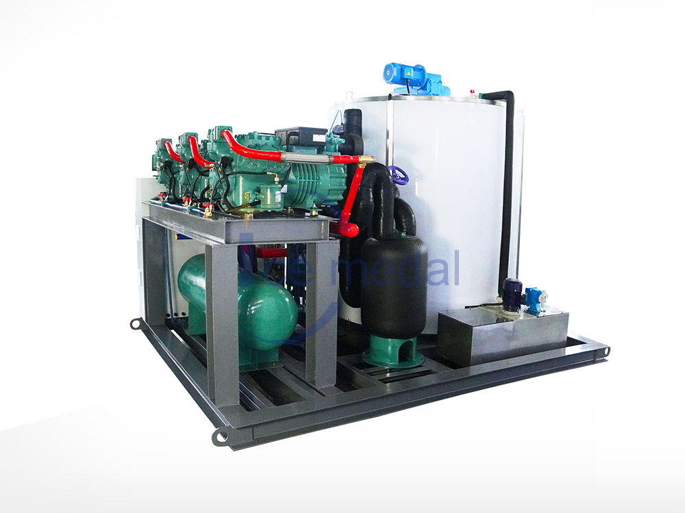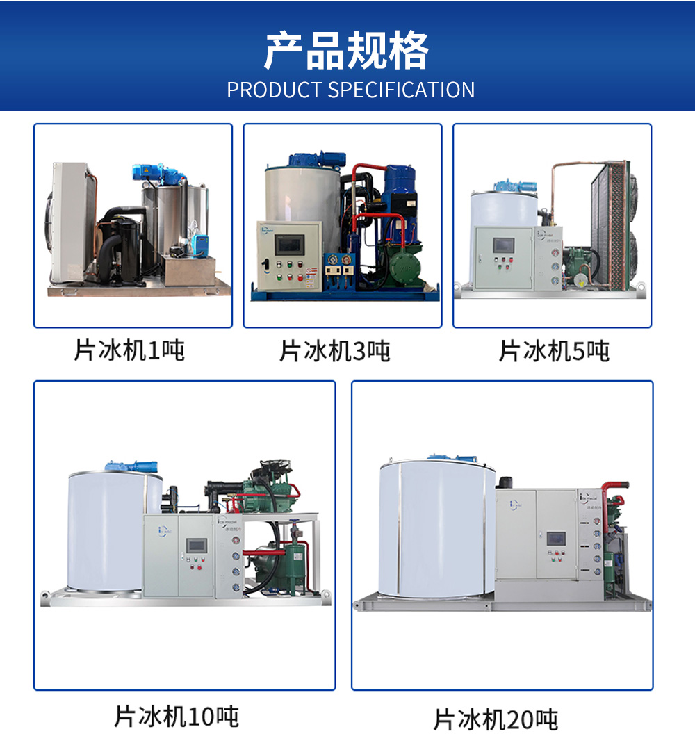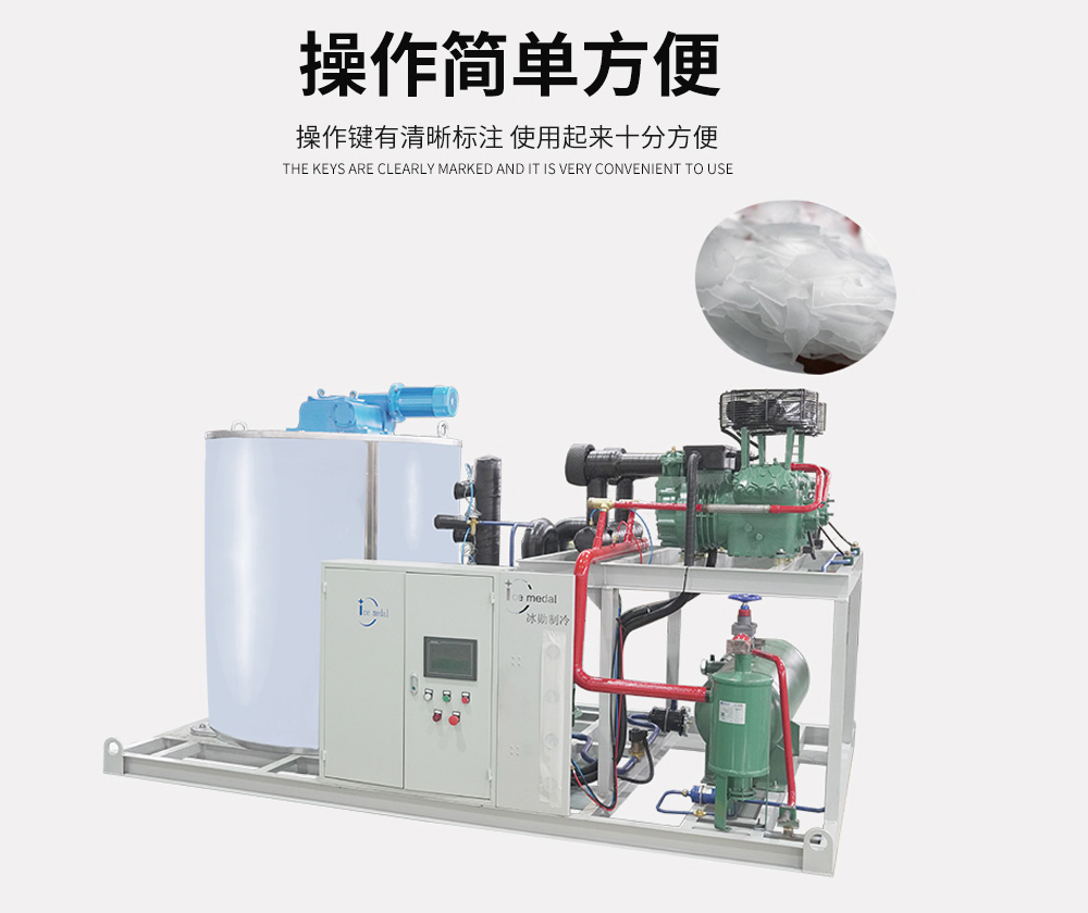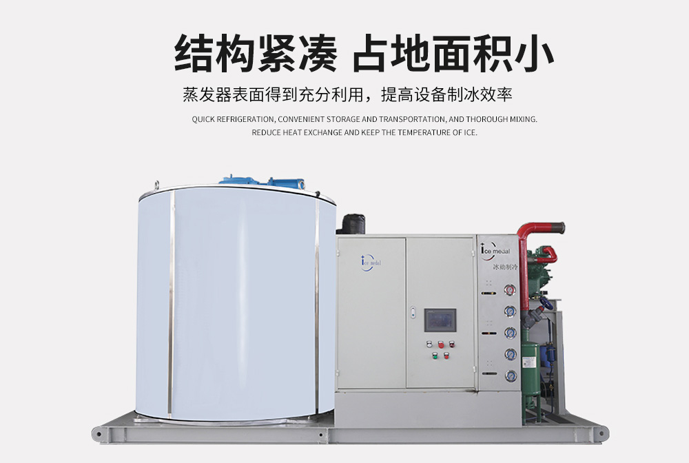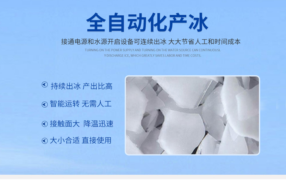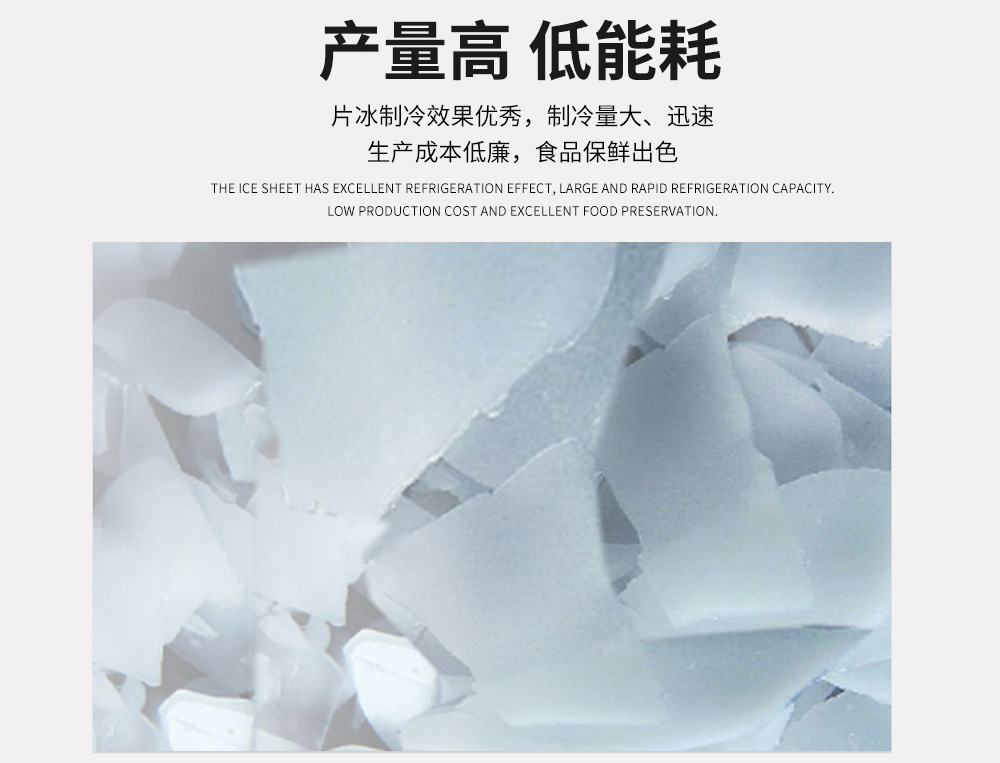 片冰机,制冰机的一种,片薄、干爽疏松状的白色冰。平面形状不规则,厚度15毫米 —22毫米,直径约为12 - 45毫米。 片冰质地干燥、柔软无尖锐棱角,不会刺伤冷冻物体。冷藏包装过程中其扁平的外型将尽可能避免伤害到被冷藏物,对被包装食品起到保护作用。 片冰具有大接触面积、快速制冷、储藏运输便捷、减少热交换,保持冰的温度。自动片冰机采用先进的立式螺旋刀切冰式蒸发器,制冰时由冰桶内部的分水装置将水均匀的分洒至 冰桶内壁快速结冰,冰成型后由螺旋冰刀切冰落下。