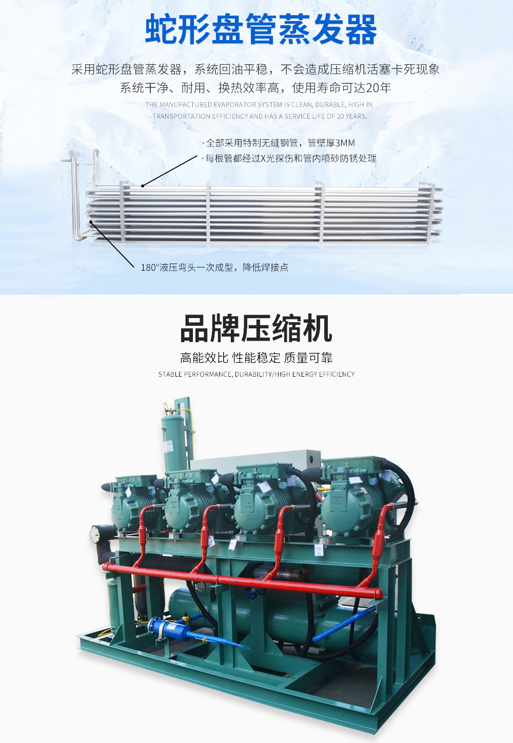 2、蛇形盘管蒸发器设计,系统回油顺畅,不会造成压缩机活塞卡死现象。