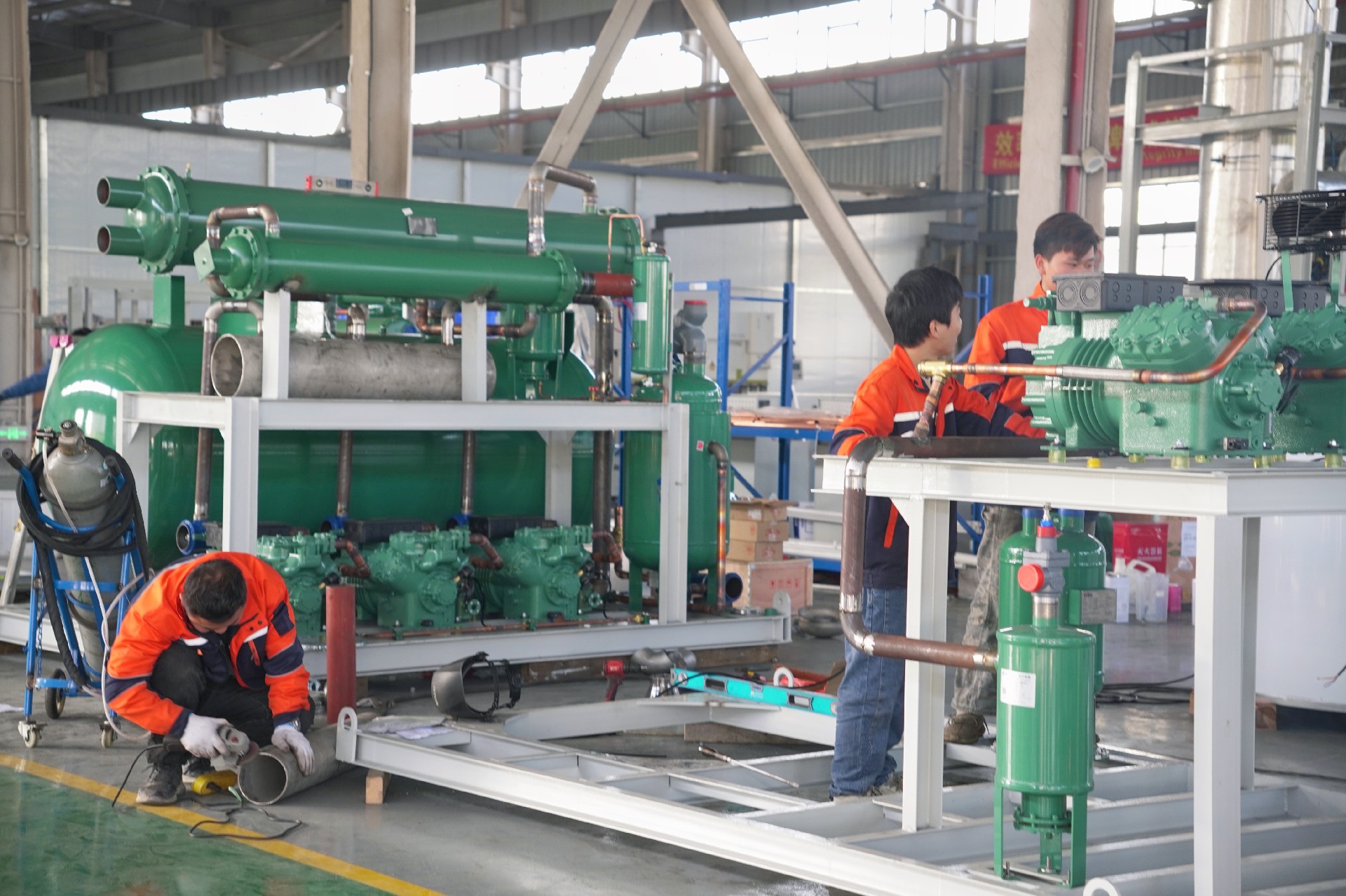 目前,公司生产的多台设备已进入组装调试阶段,近30位员工正驻守在车间一线,为产品的顺利验收保驾护航。无论是生产车间还是办公室,上海风暴娱乐制冷的员工们团结协作,互帮互助。充分诠释了”齐心协力、攻坚克难”的精神,用自己的实际行动助推公司发展。