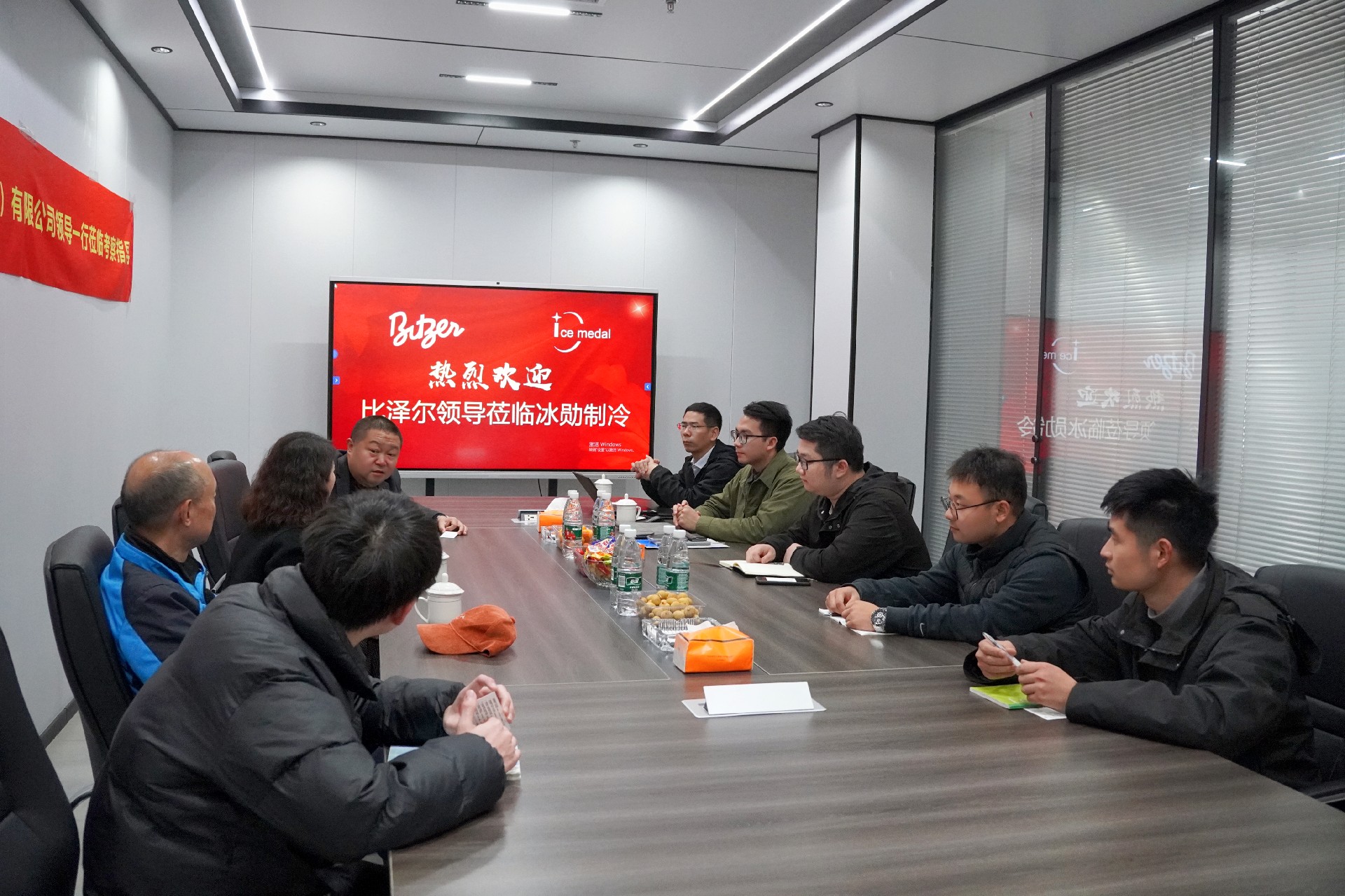 在压缩机设备选型等关键问题上,比泽尔技术负责人提供了宝贵的意见和建议。并在现场与风暴娱乐制冷技术部门进行了详细深入的探讨与交流,他们表示,将充分发挥自身在压缩机技术领域的优势,为风暴娱乐制冷提供有力的技术支持和保障。双方还就未来在技术研发、产品升级等方面进行了深入探讨,并就长期战略合作达成初步共识。